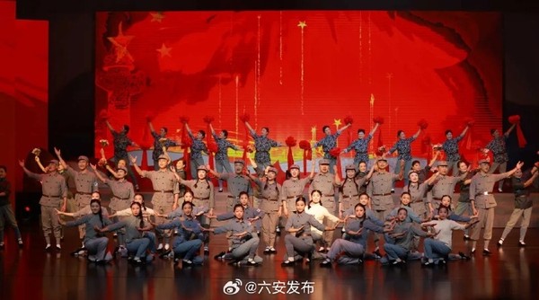 8月24日,由中共六安市委宣传部、中共六安市直属机关工作委员会、中共六安市委党史和地方志研究室、六安市总工会、六安市文化和旅游局、六安市文化旅游产业发展投资有限公司联合主办的“纪念中国人民抗日战争暨世界反法西斯战争胜利80周年群众文艺展演”在六安市红剧场隆重举行。六安市委、市人大、市政府、市政协领导和抗战英烈家属代表、劳动模范、道德模范、好人代表以及直播平台的上万名网友一同观看展演。